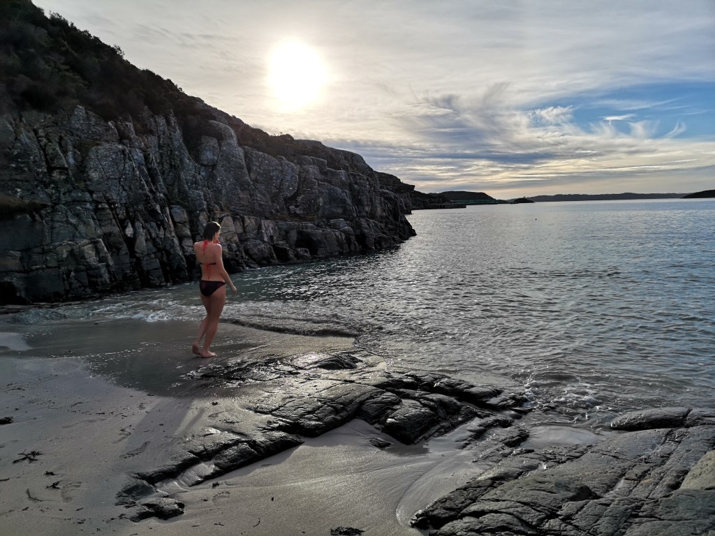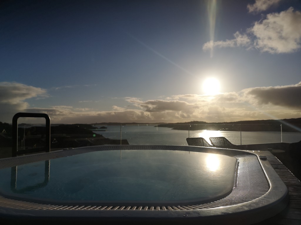 Hvorfor dra til Syden, når man kan dra til Sotra? Denne uken har Bloggen vært på utflukt/søkt tilflukt i den nye nabokommunen Øygarden, langt ute i det som før het Sund. Etter et sjøbad i vel rufsete vær torsdag, fristet det med godt oppvarmet boblebad i helgen. Denne bloggen bejaer alle typer bading, fra naturlige plask i sjø og vann til dypp i kjemiske oppkok både ute og inne. Er det vått og godt for kroppen, er bloggen på.